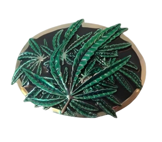 אבזם אבזם עגול עם תבליט פרחים ירוקות על רקע שחור מתאים לחגורות 4ס"מ