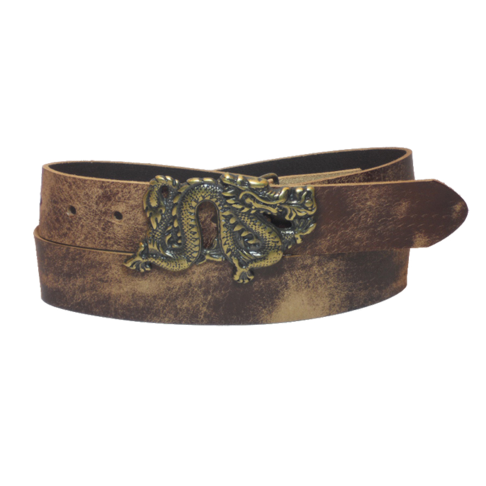 חגורת עור משובח בצבע חום יוזד,בעלת אבזם  דרקון סיני ייחודי ומעניין.